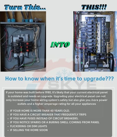 Skye Services, will inspect, diagnose and work effectively and efficiently to repair any electrical issue that are present. Ensuring all safety standards and procedures are met when our work is done.